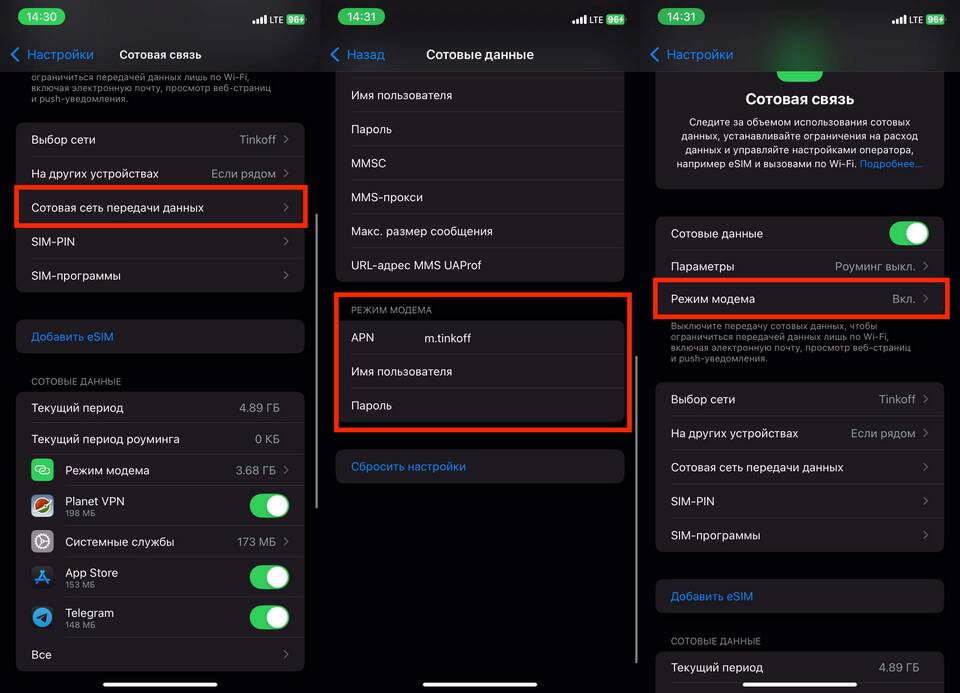 Режим модема не включается | Проверьте баланс и наличие интернета, перезагрузите устройство. |