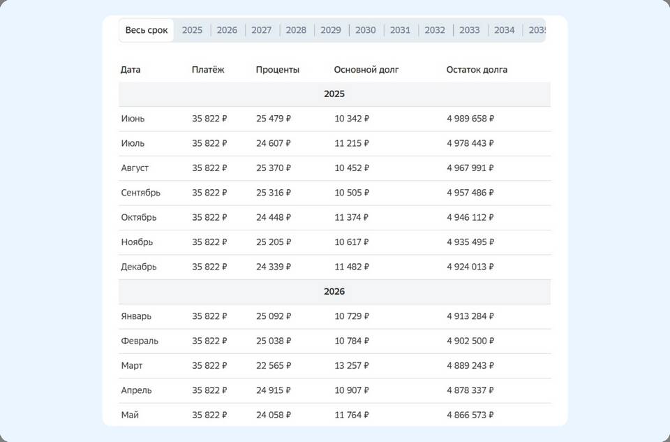 - Перерасчет графика платежей